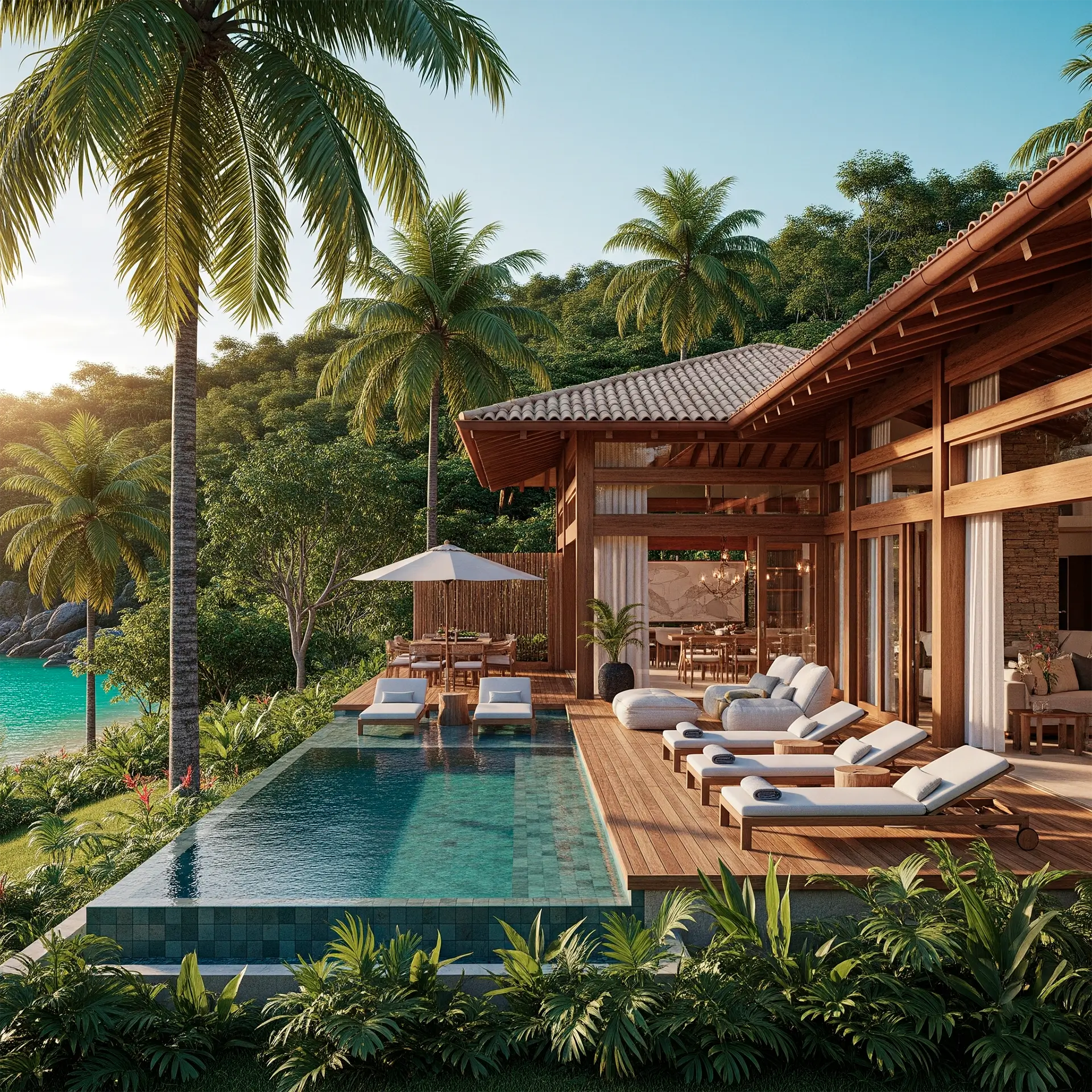 Projeto e execução - Uma fantástica residência tropical de 480m² localizada no litoral da Bahia construída em um local privilegiado nos altos de uma falésia.