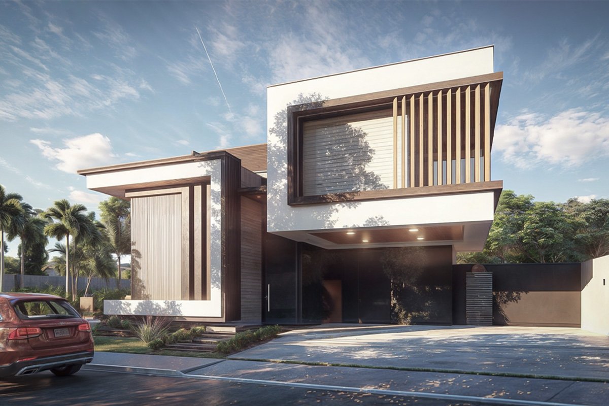 Projeto e Vizualização Arquitetônica - Com um incrível design contemporâneo, esta residência de 320 m² com formas lineares foi projetada com o desafio de ser imponente e simples ao mesmo tempo, reunindo elegância e funcionalidade. Foi desenvolvida para um lançamento imobílário de alto padão.
