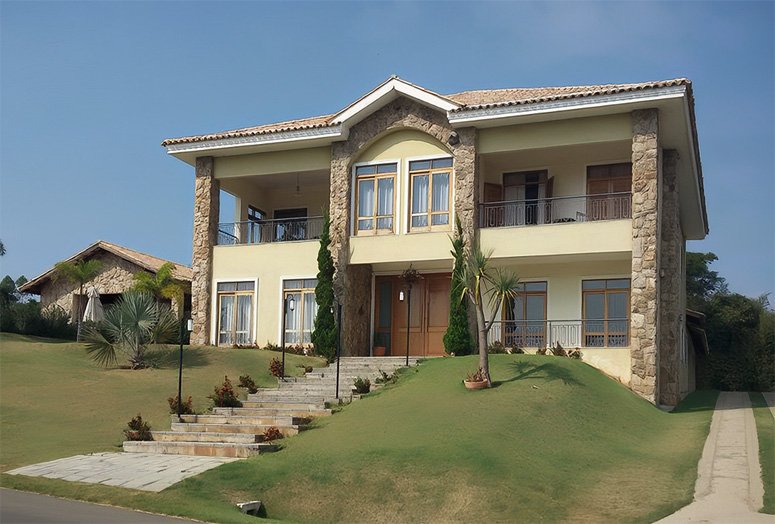 Projeto e execução - Esta Magnífica casa com estilo clássico, foi inspirada nas arquitetura tradicional da região da Toscana na Itália, com pedras naturais e cores neutras possui um design suntuoso com seus 870 m² de área construída. Está localizada em uma região nobre de Itu no interior de São Paulo.